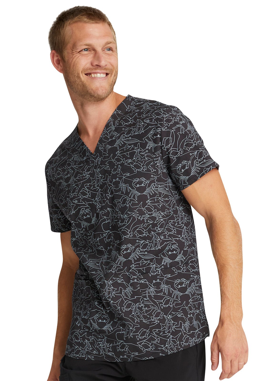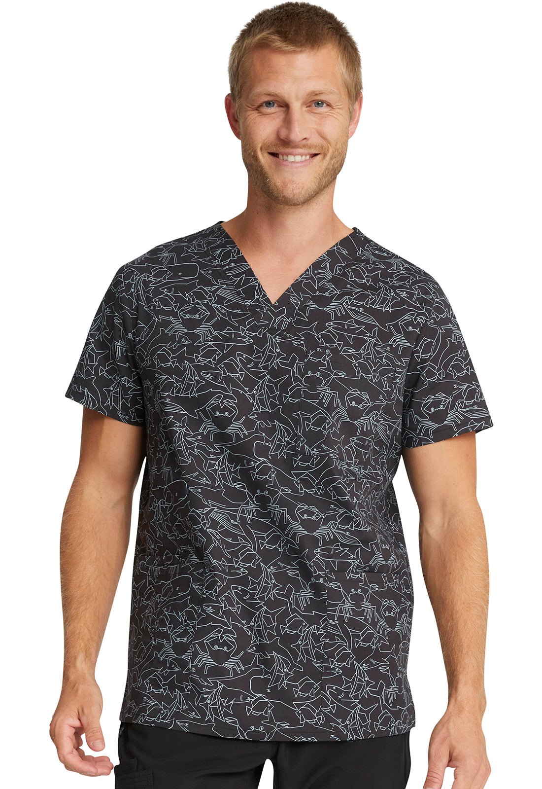 Shark Fish Cherokee Print Unisex V Neck Scrub Top CK691 STKH