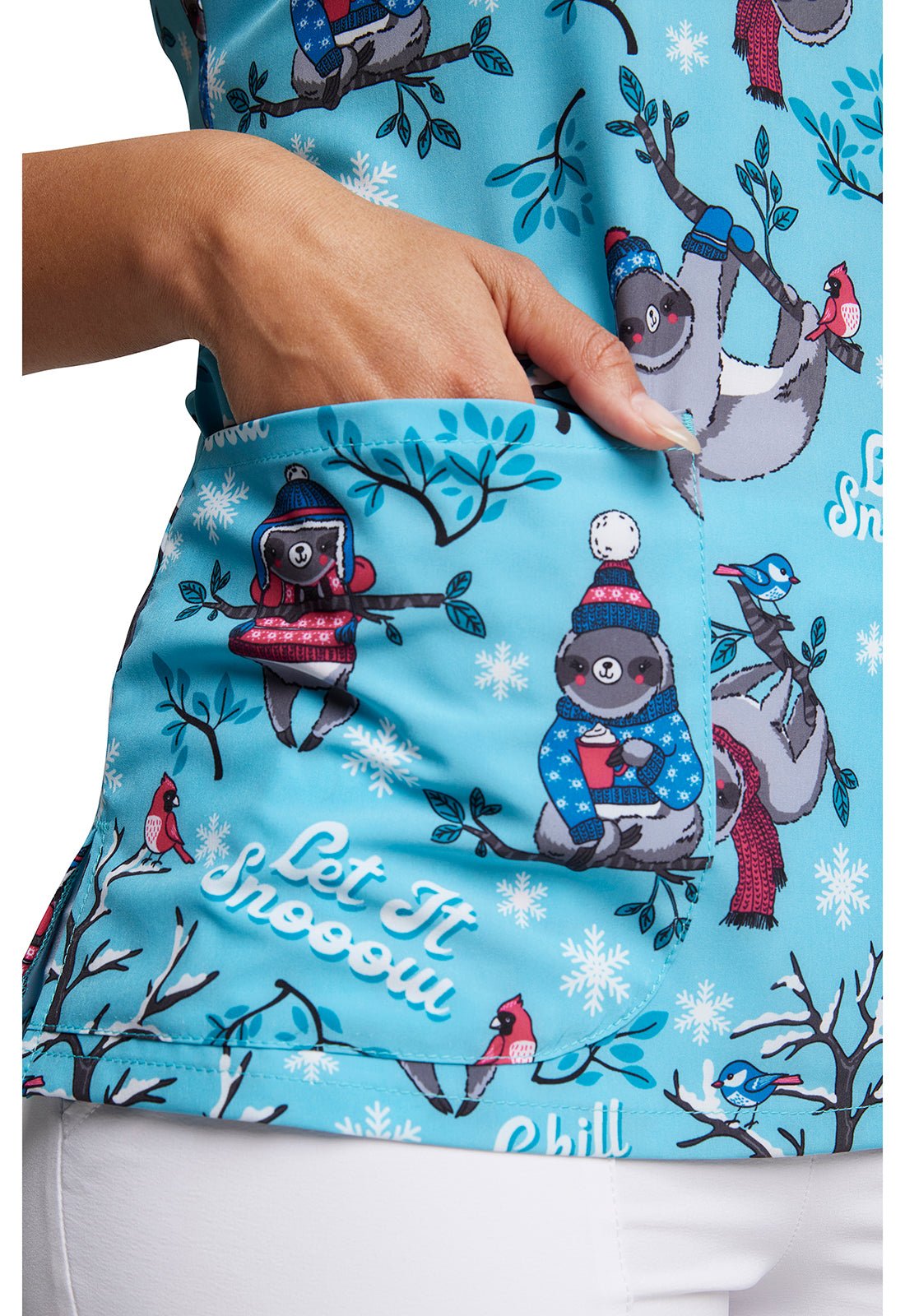 Sloth Dickies EDS Print V Neck Scrub Top DK852 WTVB