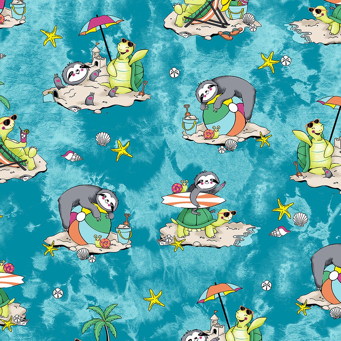Slow Tide Cherokee Sloth Turtle Print V Neck Scrub Top CK671 SOTD