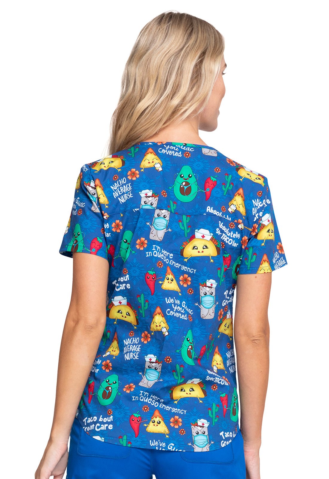 Taco Cherokee Nurse Print V Neck Scrub Top CK652 NANS