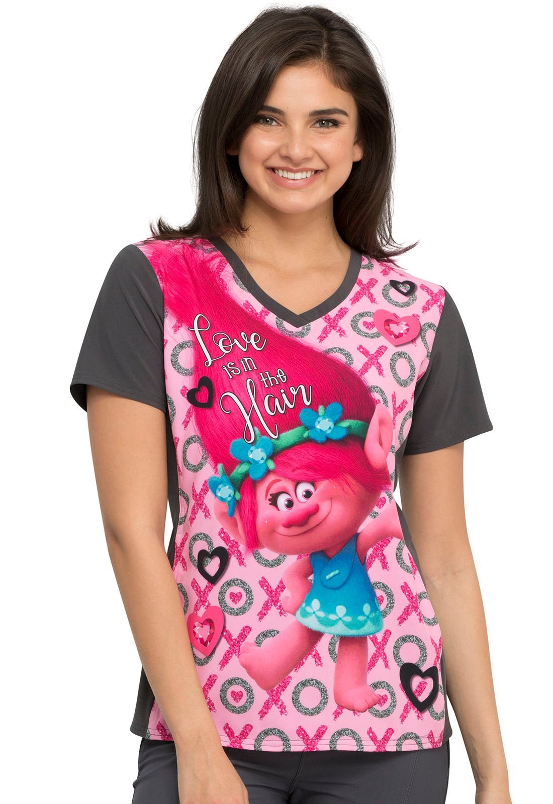 Trolls Tooniforms Licensed Dreamworks V Neck Scrub Top TF627 TOIN