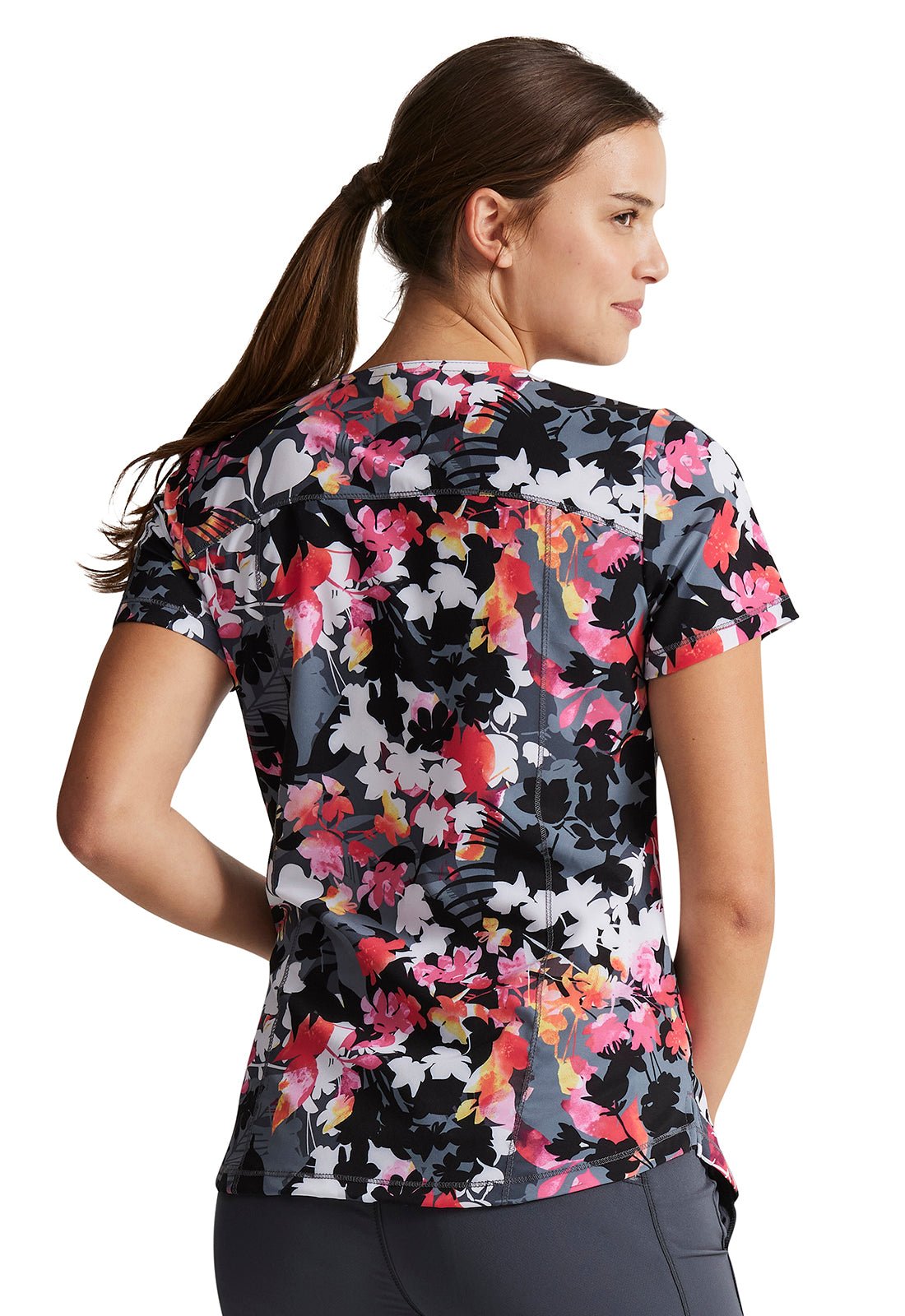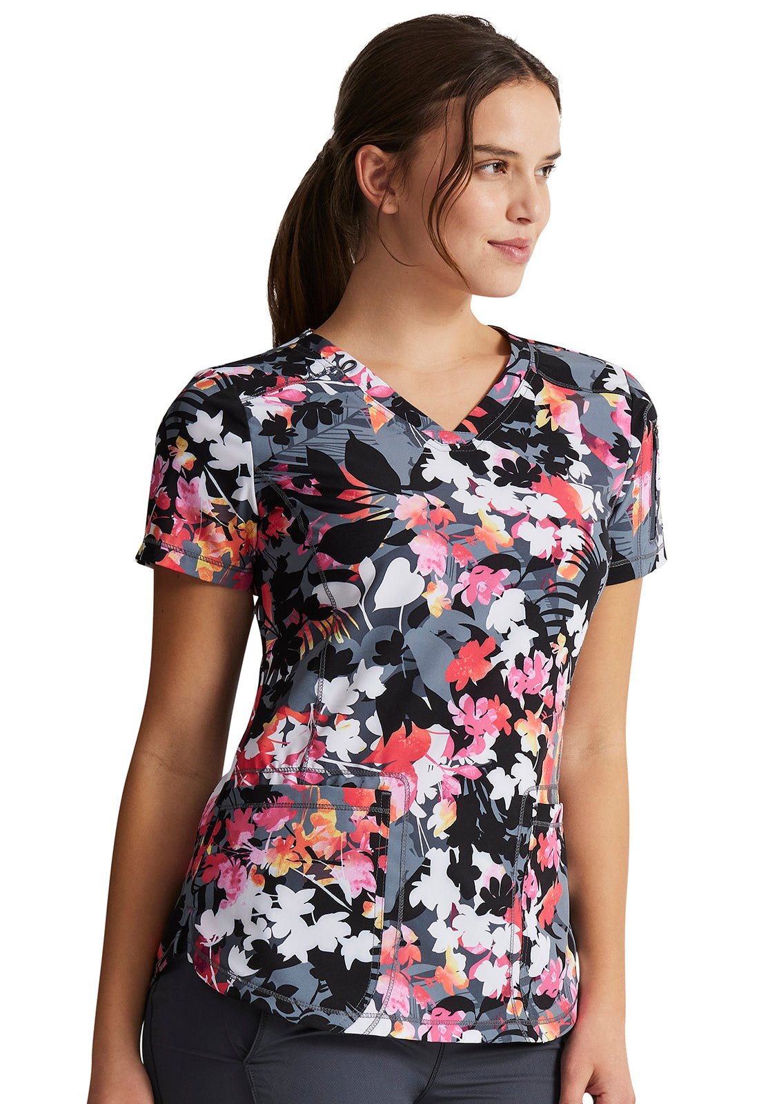 Tropical Escape Dickies Dynamix Floral Print V Neck Scrub Top DK731 TREP