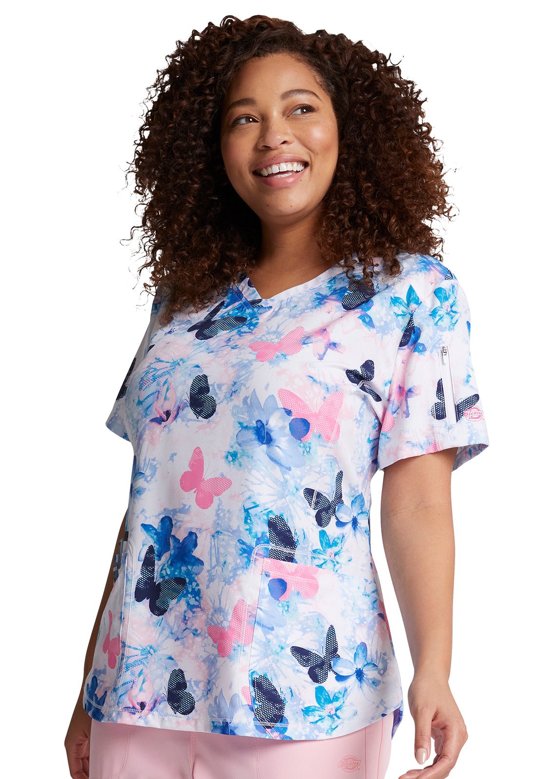 Dickies Dynamix Prints V Neck Top in Flutterly Beautiful