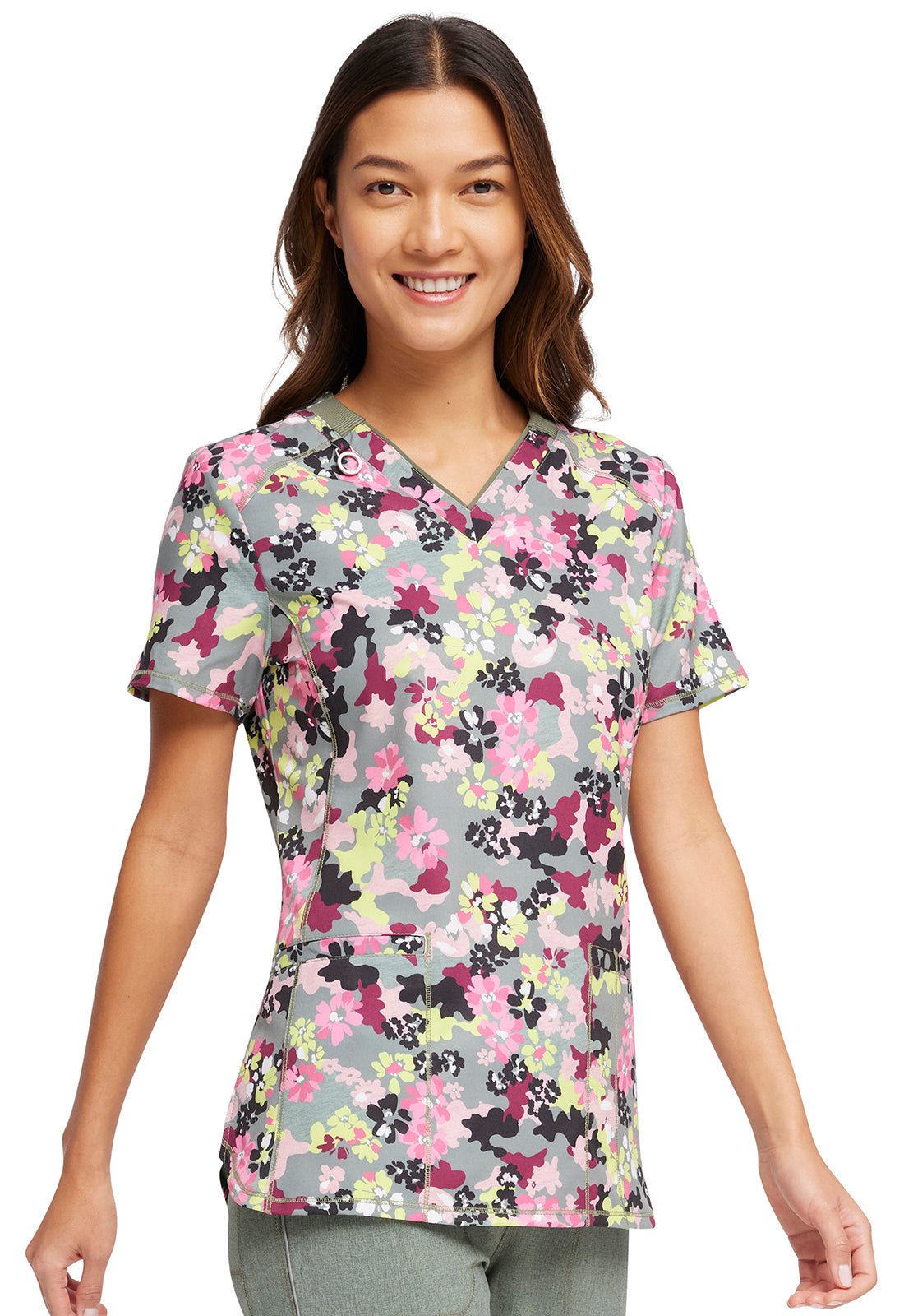 Cherokee Infinity V Neck Top in Floral Camo-tion