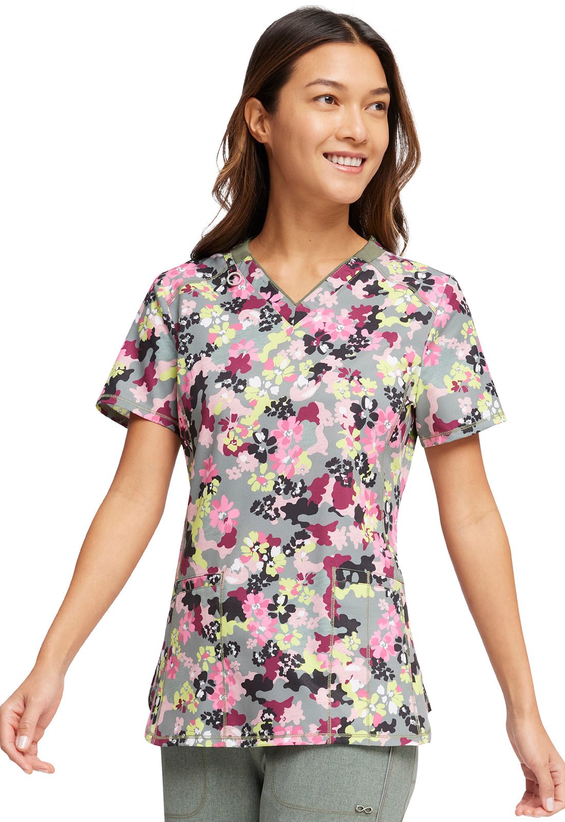 Floral Cherokee Infinity Print V Neck Scrub Top CK634 FLCM