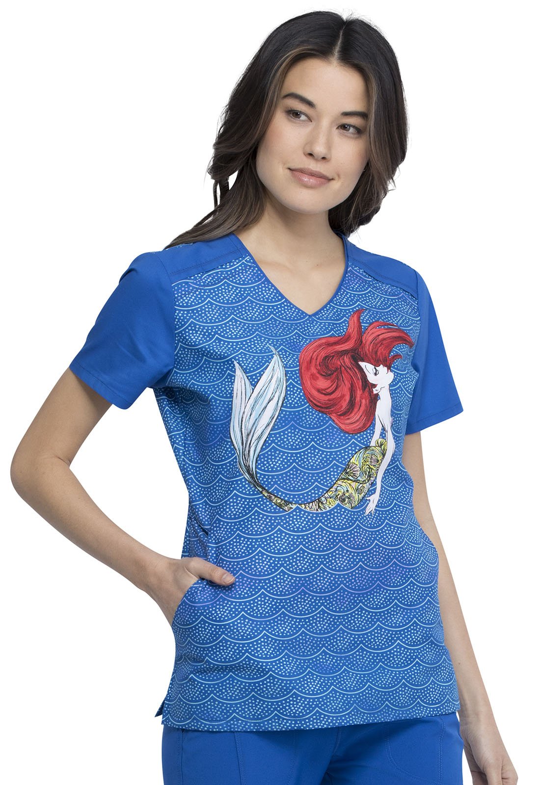 Little Mermaid Tooniforms Licensed Disney Princess V Neck Scrub Top TF630 PRML