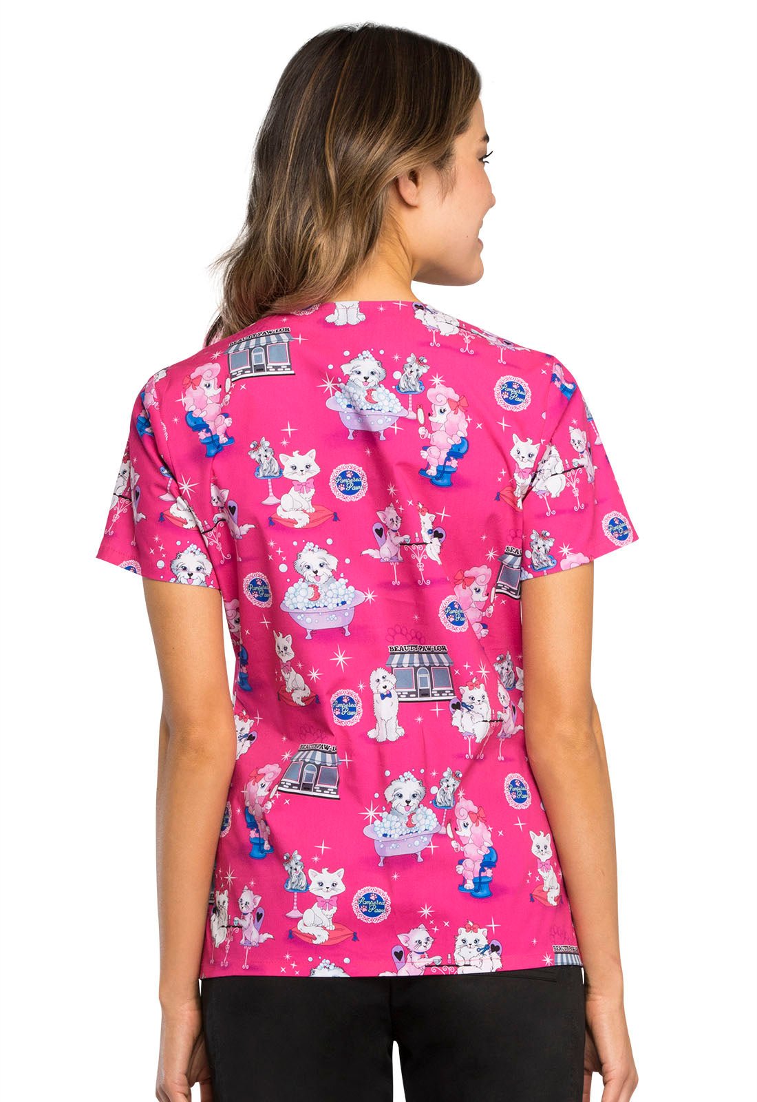 Cat Print Cherokee Mock Wrap Scrub Top CK614 BTPL