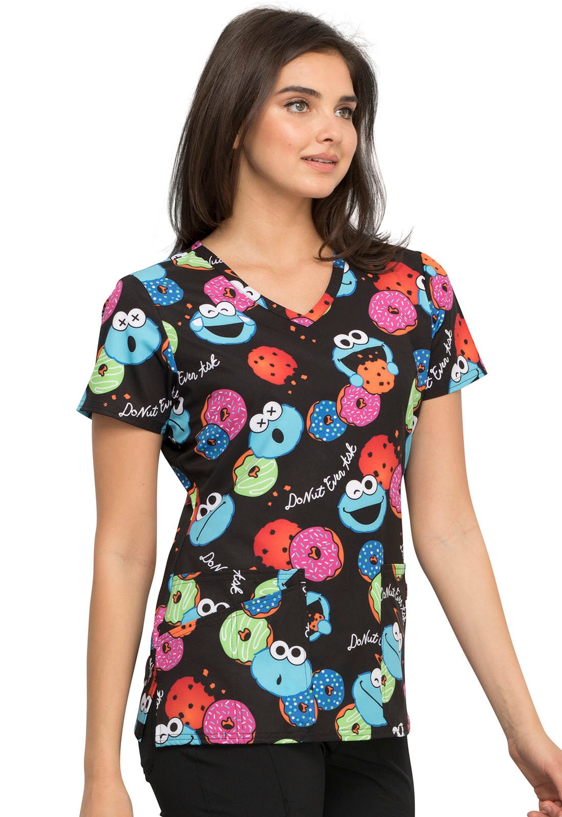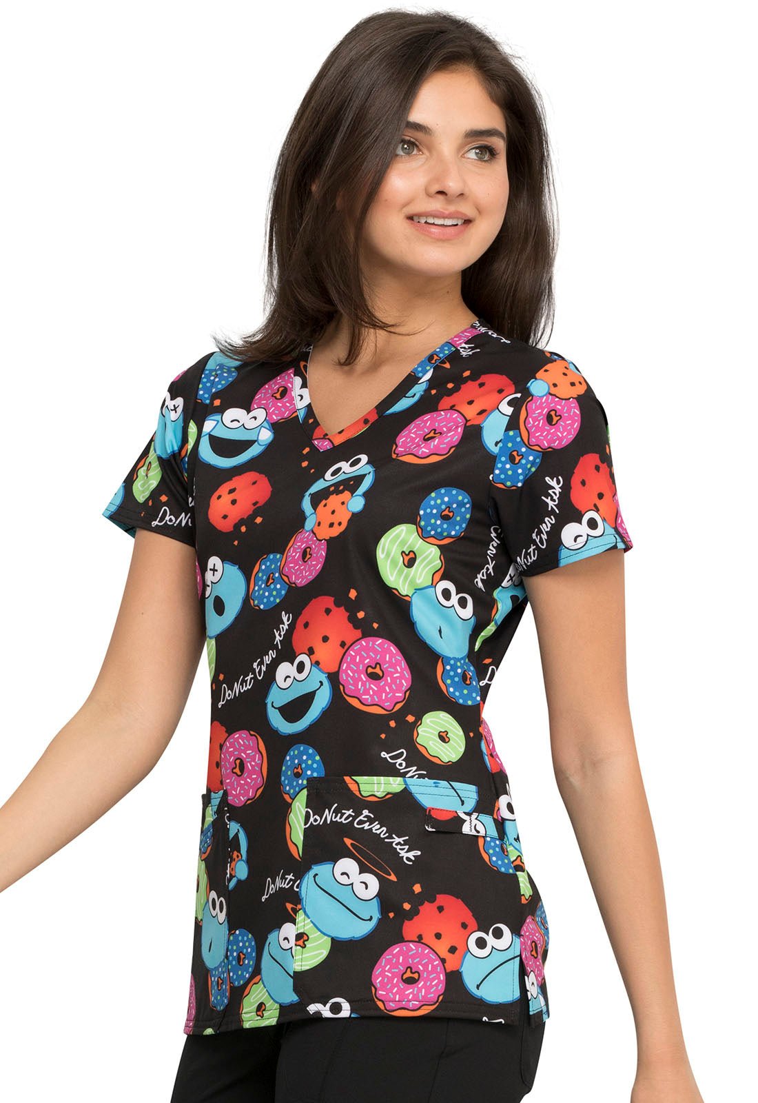 Cookie Monster Tooniforms Licensed V Neck Scrub Top TF638 SWIX