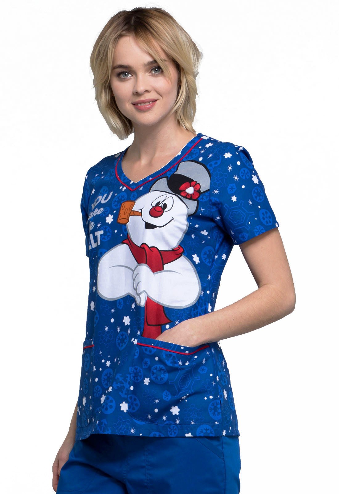 Frosty The Snowman Tooniforms Licensed Christmas V Neck Scrub Top TF634 FRMMG