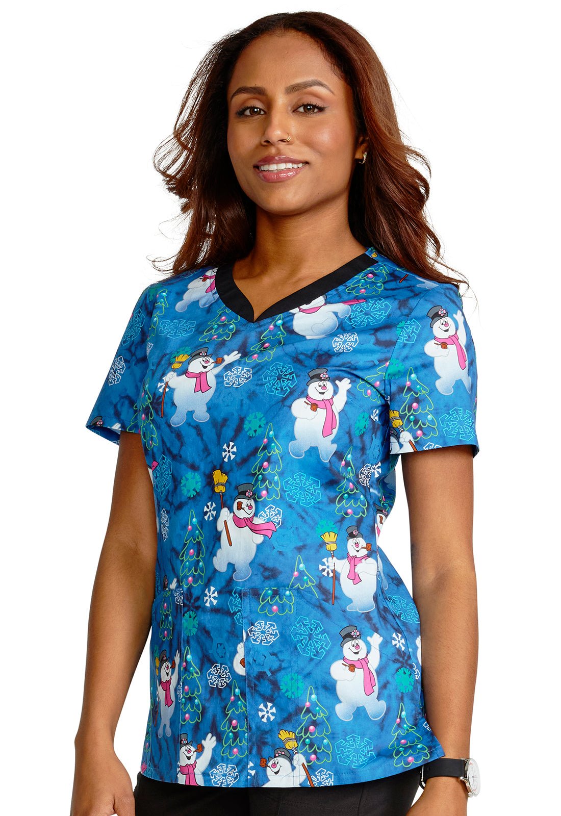 Fun Frosty Cherokee Tooniforms Christmas V Neck Scrub Top TF671 FRNR