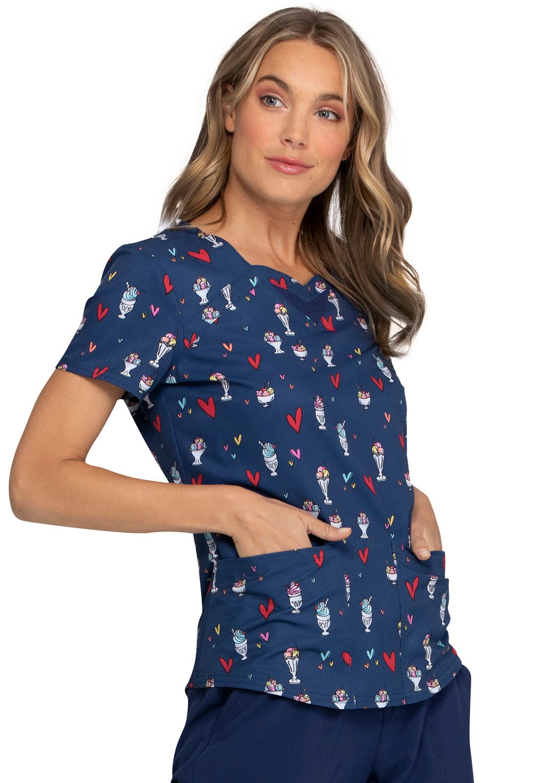Ice Cream Print Sweetheart Neck Scrub Top HS616 HESG