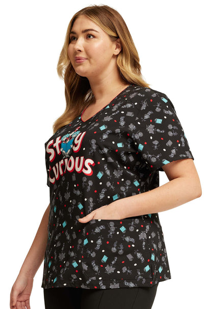 Cherokee Licensed V Neck Top in Inquiring Minds