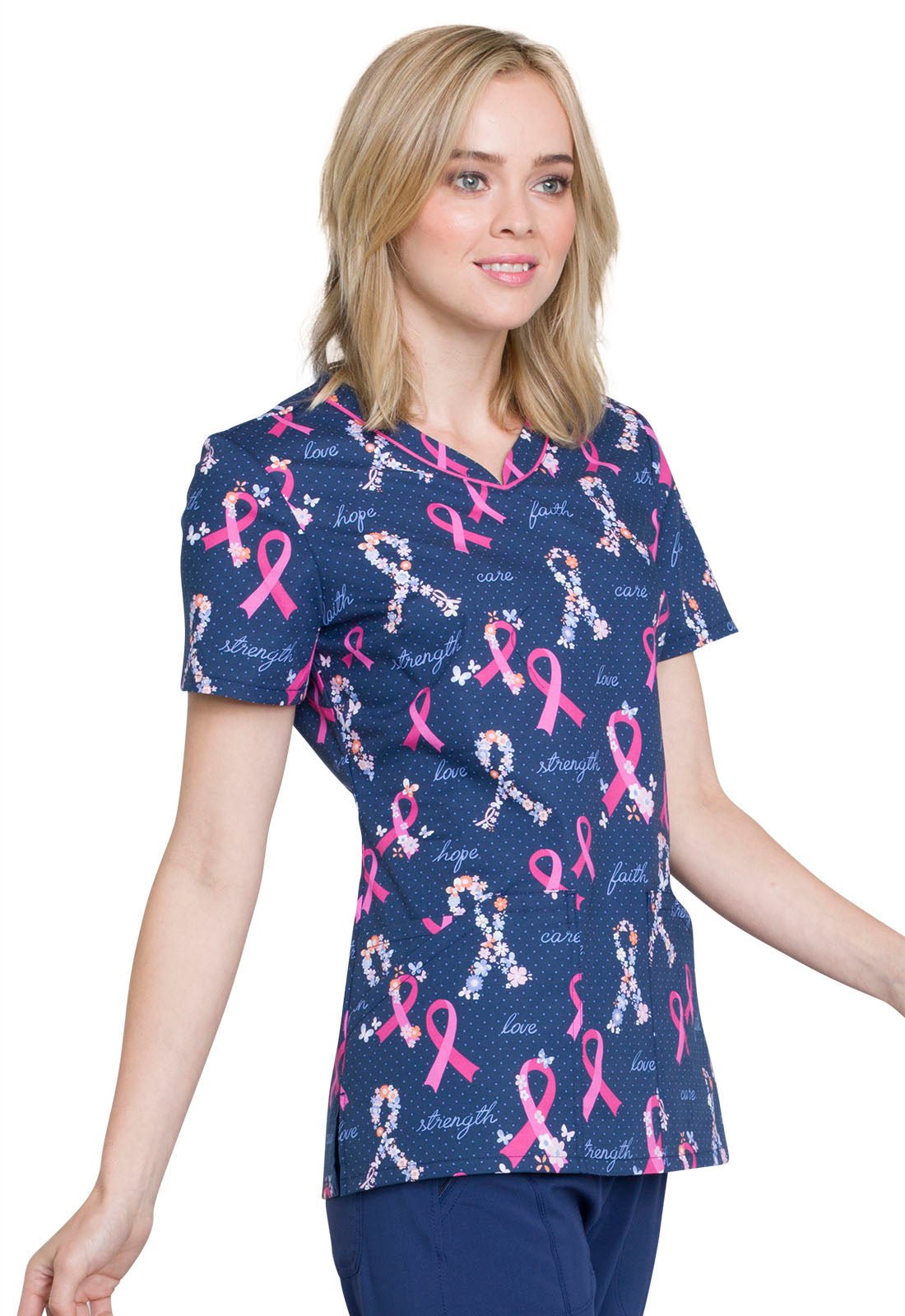 Rosy Ribbons Cherokee Breast Cancer Awareness V Neck Scrub Top CK646 RORI
