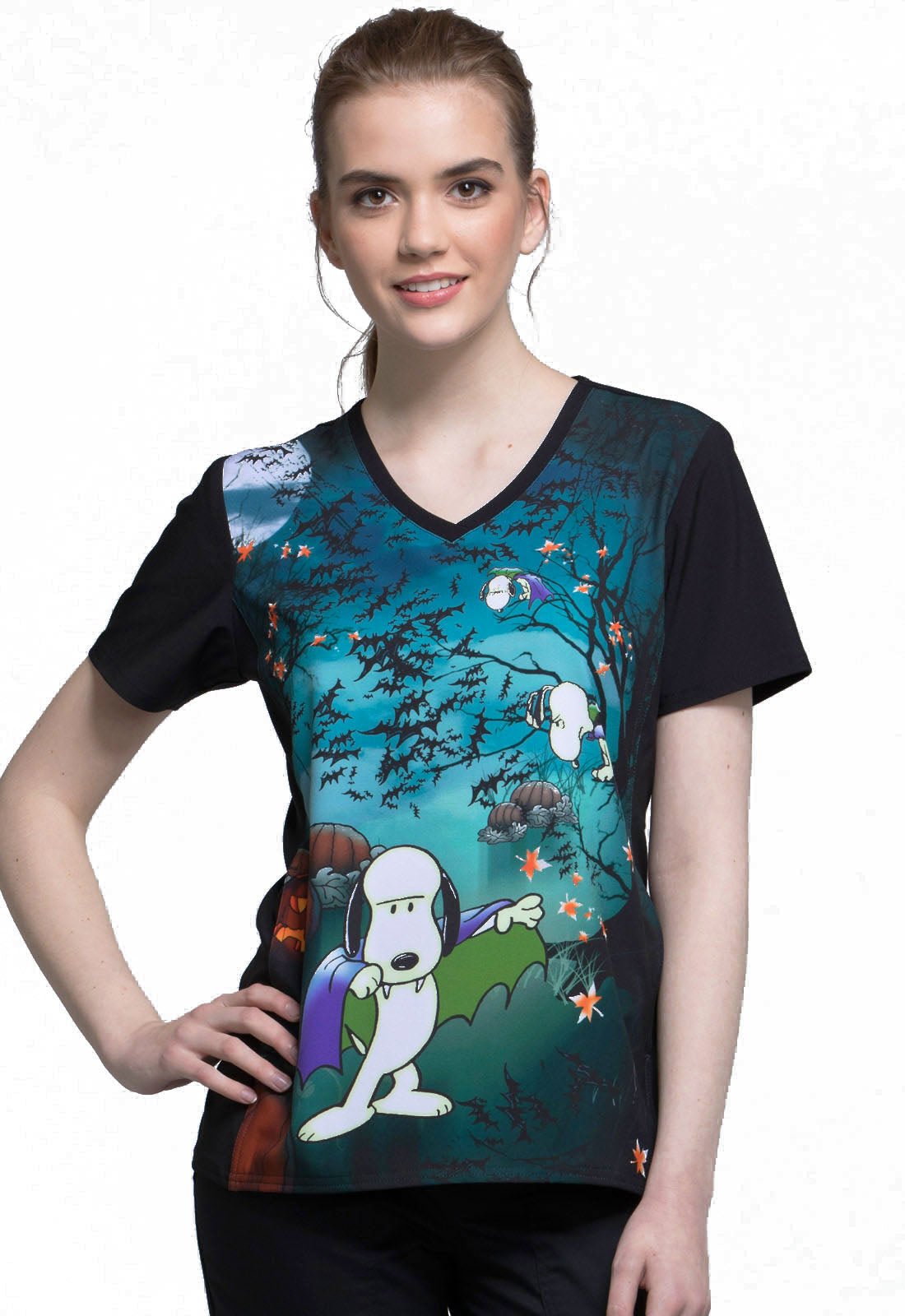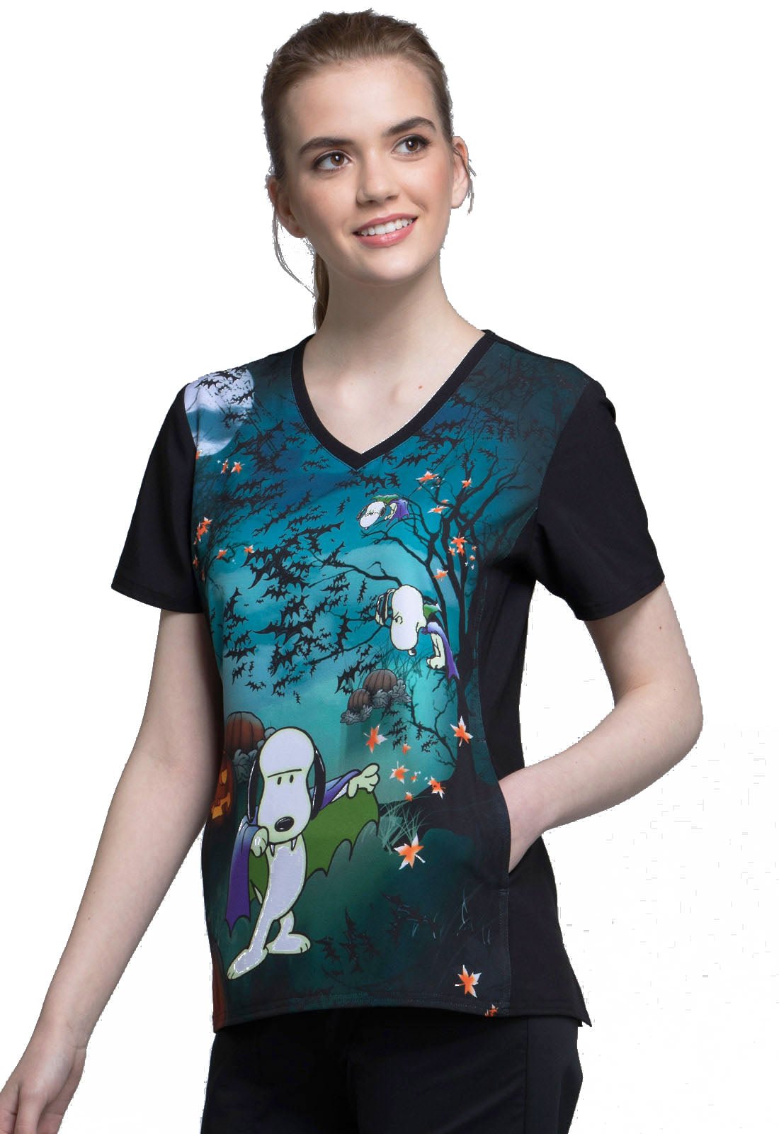 Snoopy Tooniforms Licensed Peanuts Halloween V Neck Scrub Top TF627 PNUL