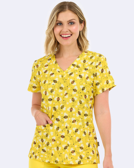 Blusa médica con cuello en V y estampado de Zavate "Cute As A Bug" 1054 CTBG