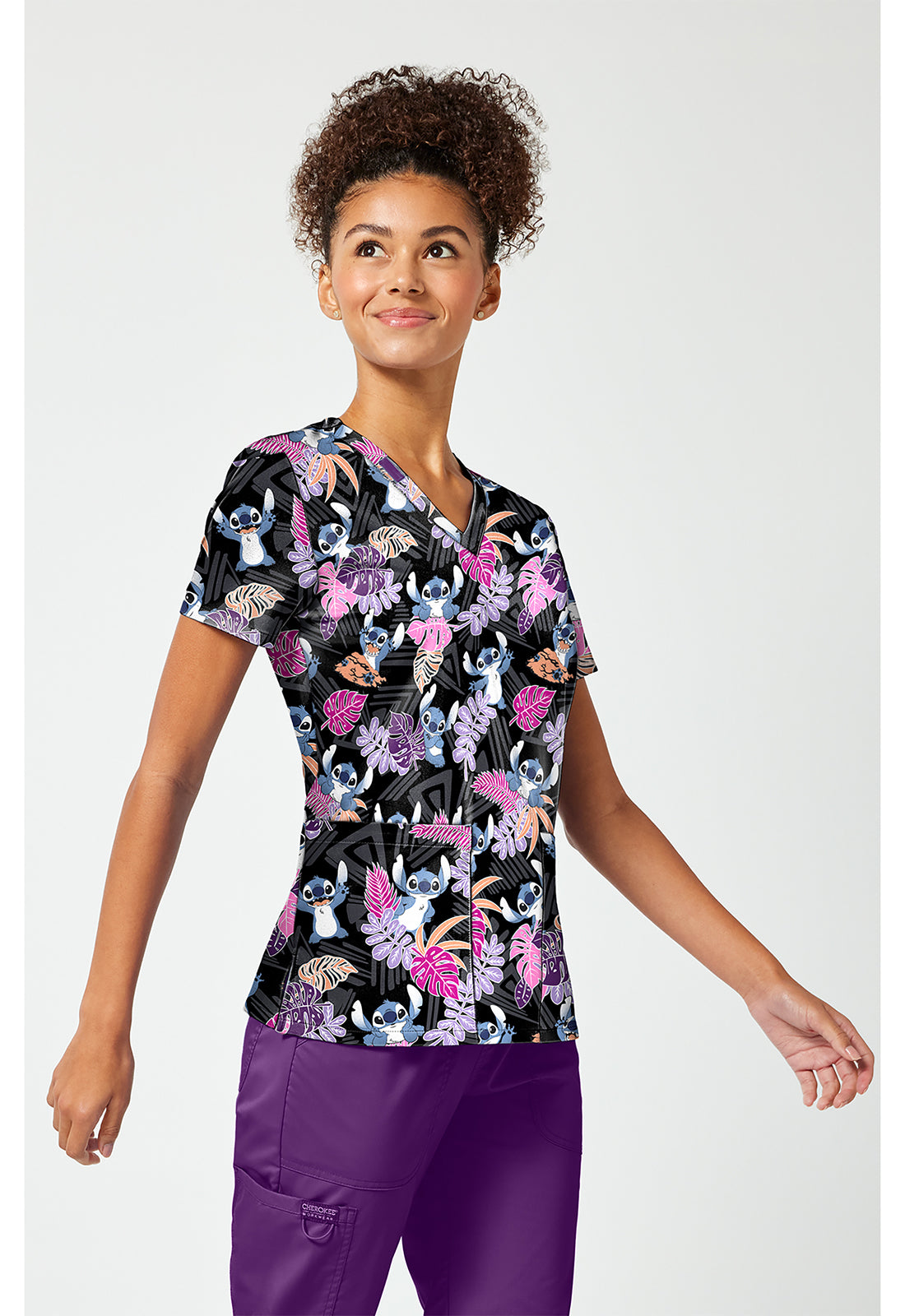 Cherokee Licensed Disney V Neck Top in Stitch Tribe