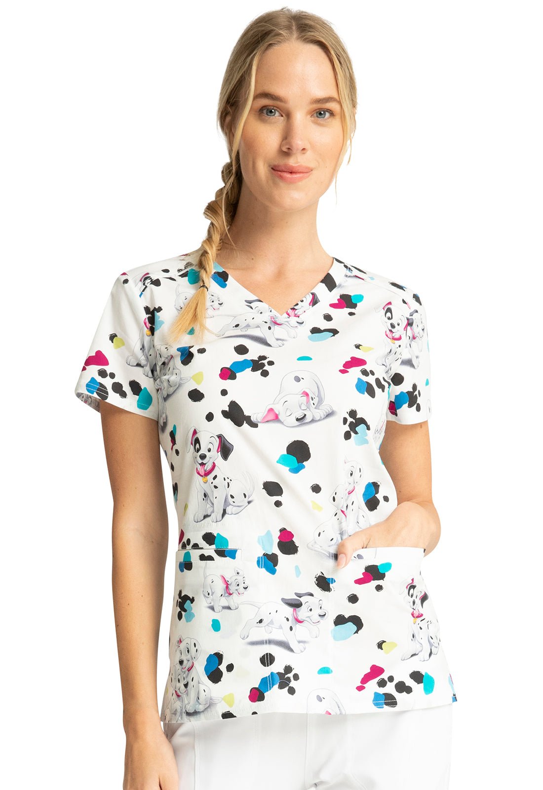 101 Dalmatians Tooniforms Licensed Disney V Neck Scrub Top TF666 DAPO