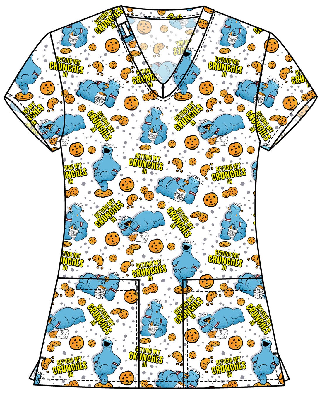 Cookie Monster Tooniforms Licensed Sesame Street V Neck Scrub Top TF796 SWCR