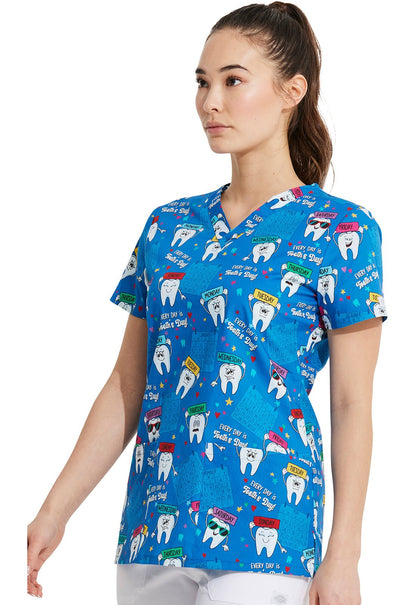 Dickies Prints V Neck Top in Tooth's Day Everyday