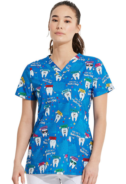 Dental Dickies Print V Neck Scrub Top DK704 TDEY