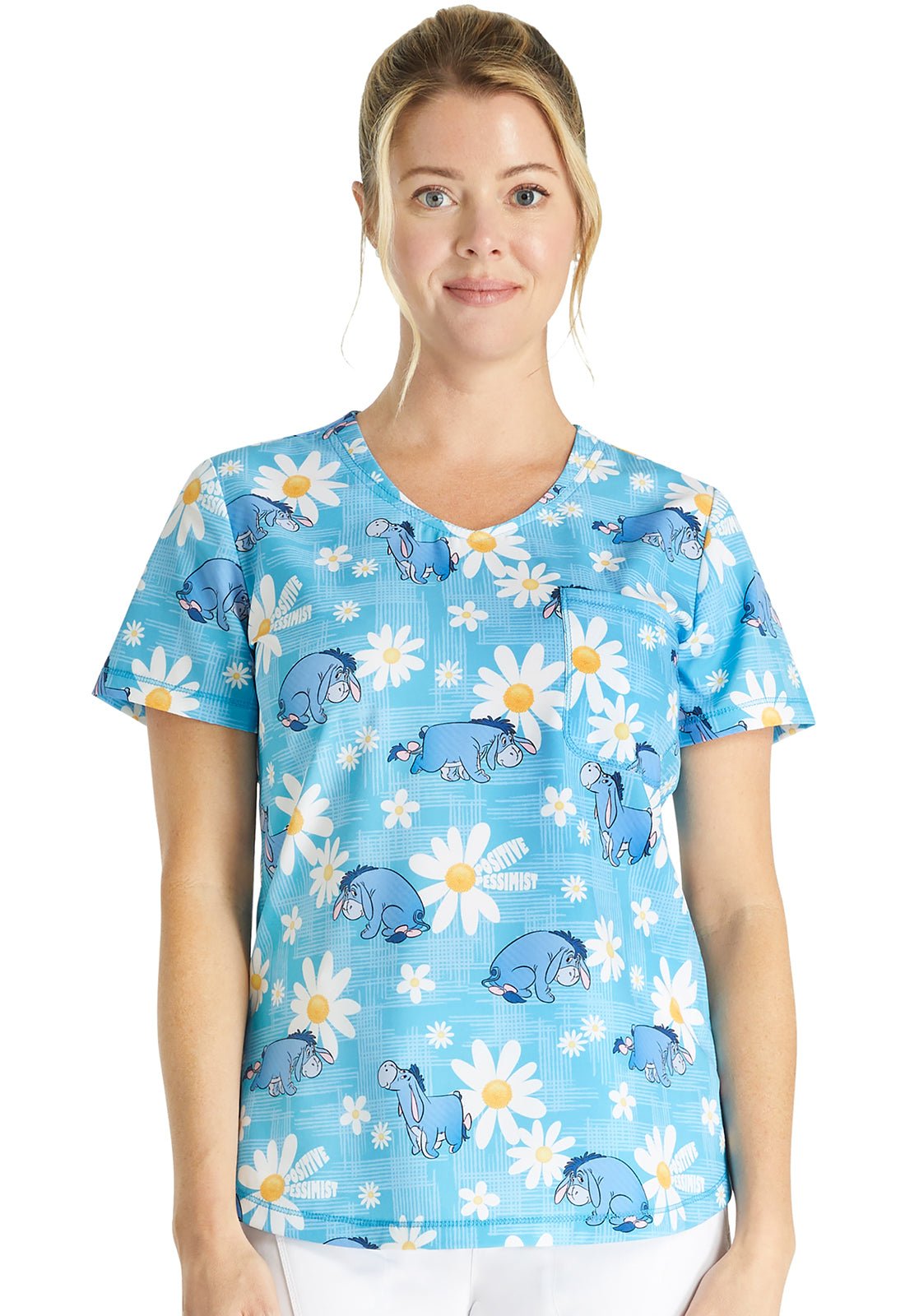 Eeyore Cherokee Tooniforms Disney Rounded V Neck Scrub Top TF786 PHVM