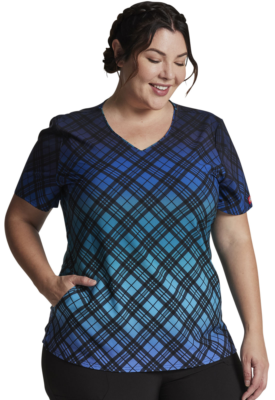 Fading Plaid Dickies EDS Print V Neck Scrub Top DK853 FGPL