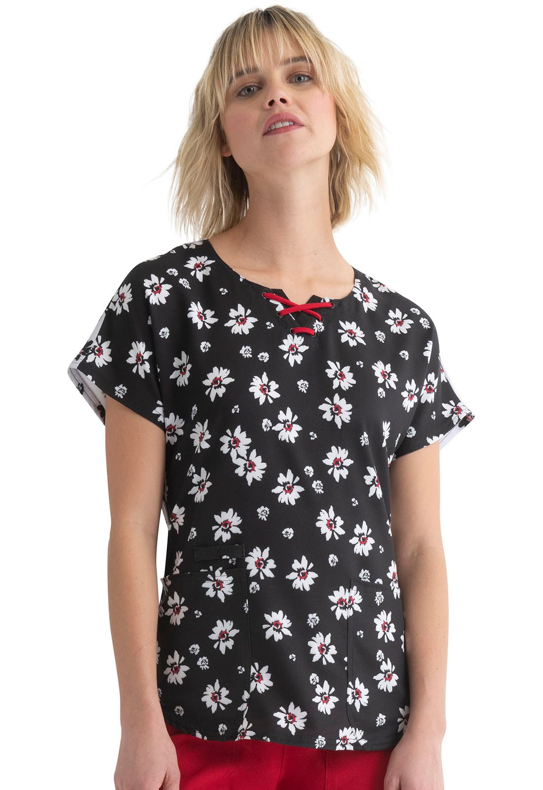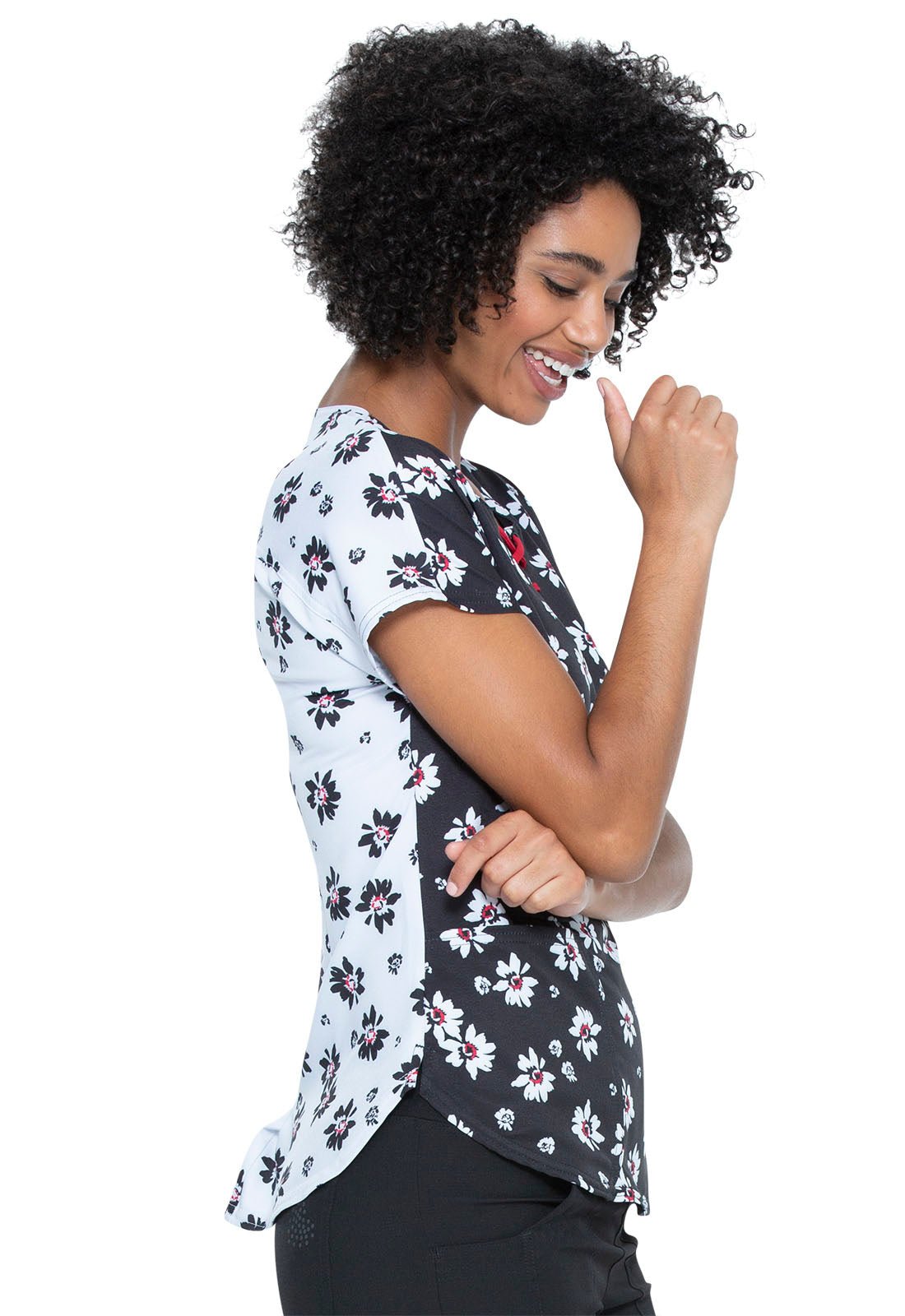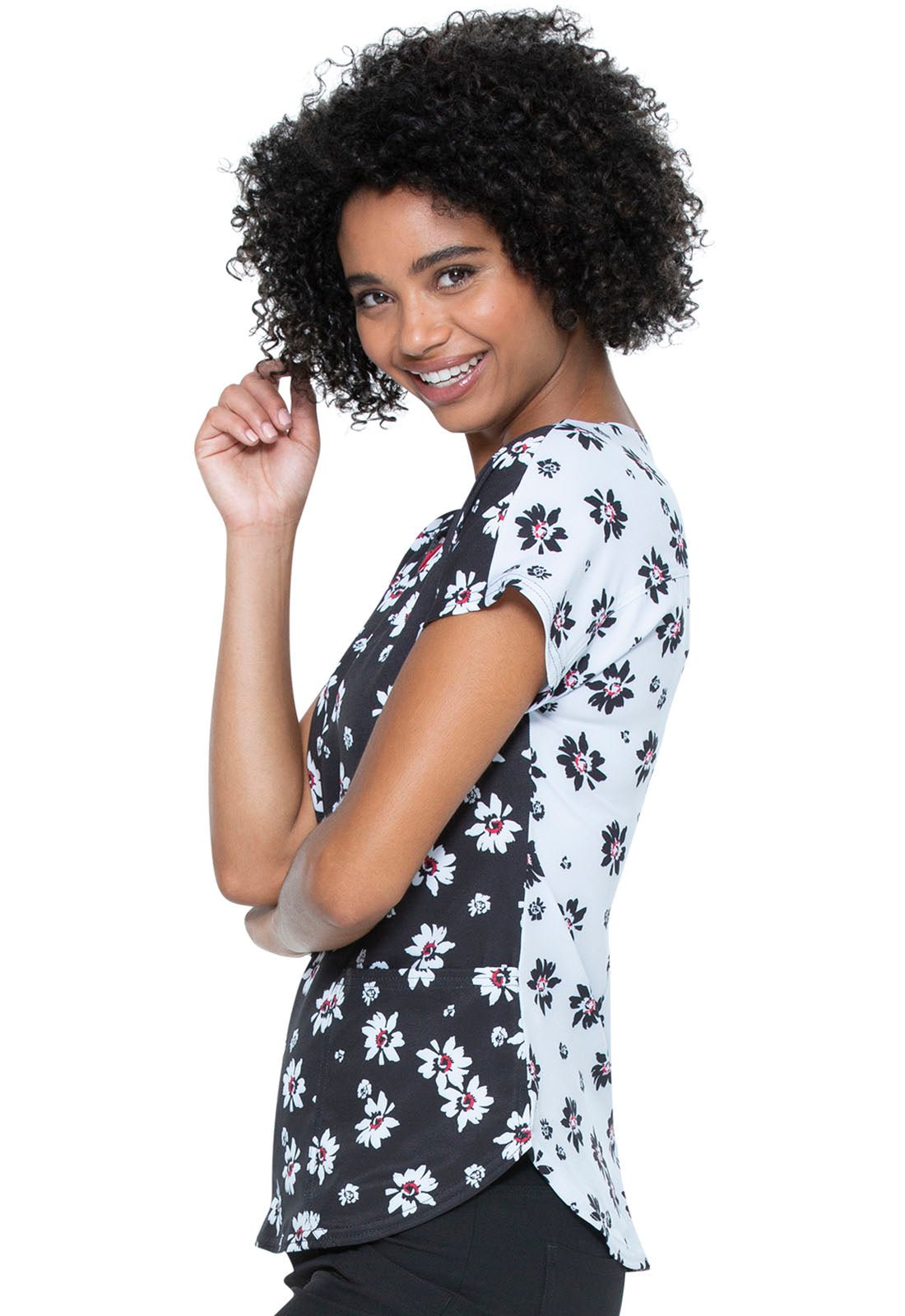 Floral Print Round Neck Scrub Top HS684 IPYU