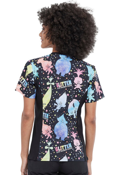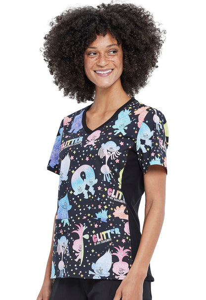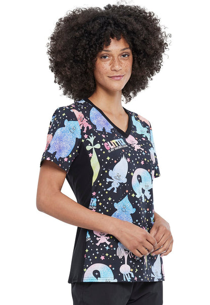 Cherokee Licensed V Neck Top in Glitter Trolls