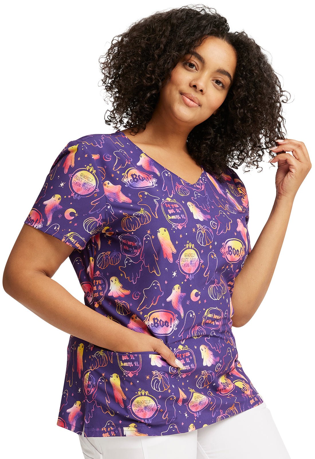Halloween Dickies EDS Print V Neck Scrub Top DK852 HWMB