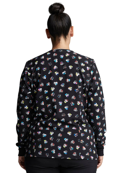 Heart Print Dickies EDS Snap Front Scrub Jacket DK309 LVDT