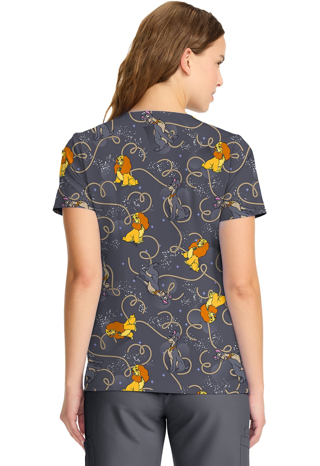 Lady And The Tramp Cherokee Tooniforms Licensed Disney V Neck Scrub Top TF626 LACN