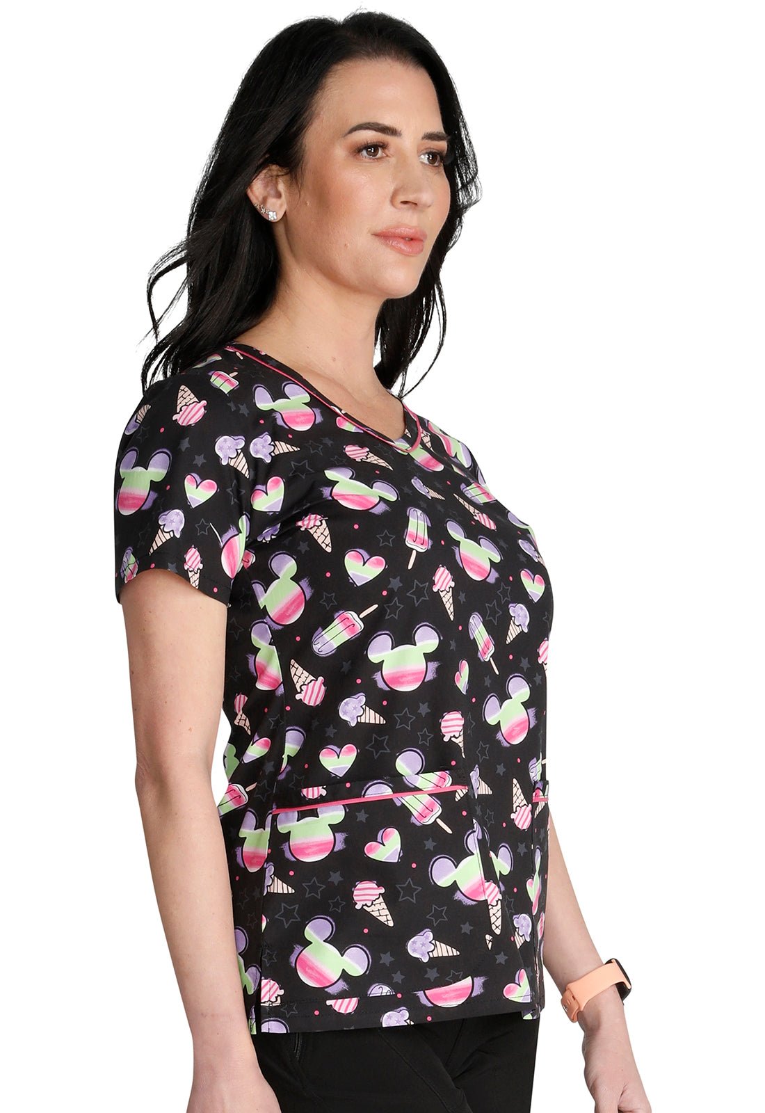 Cherokee Licensed V Neck Top in Mickey Ice Cream