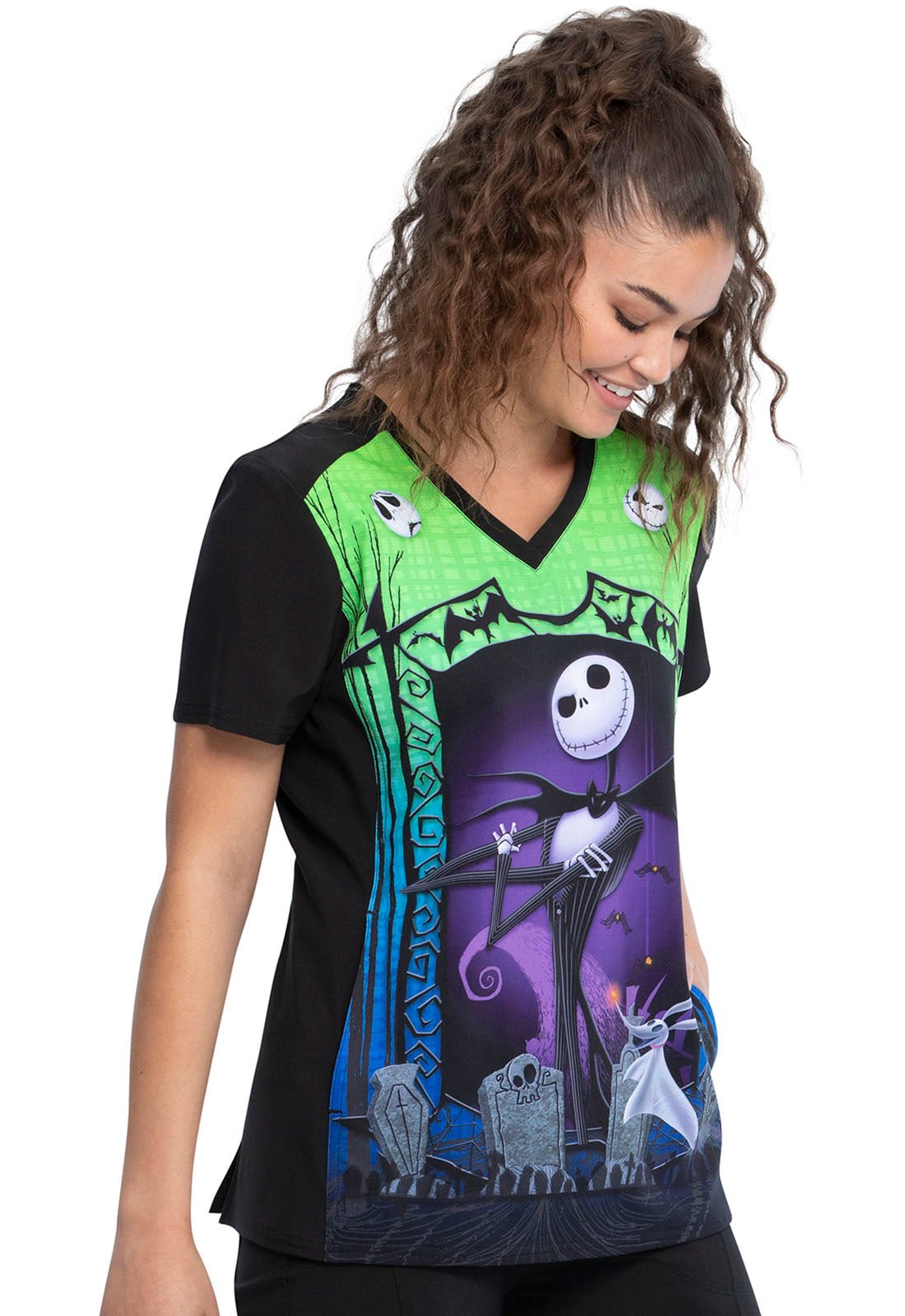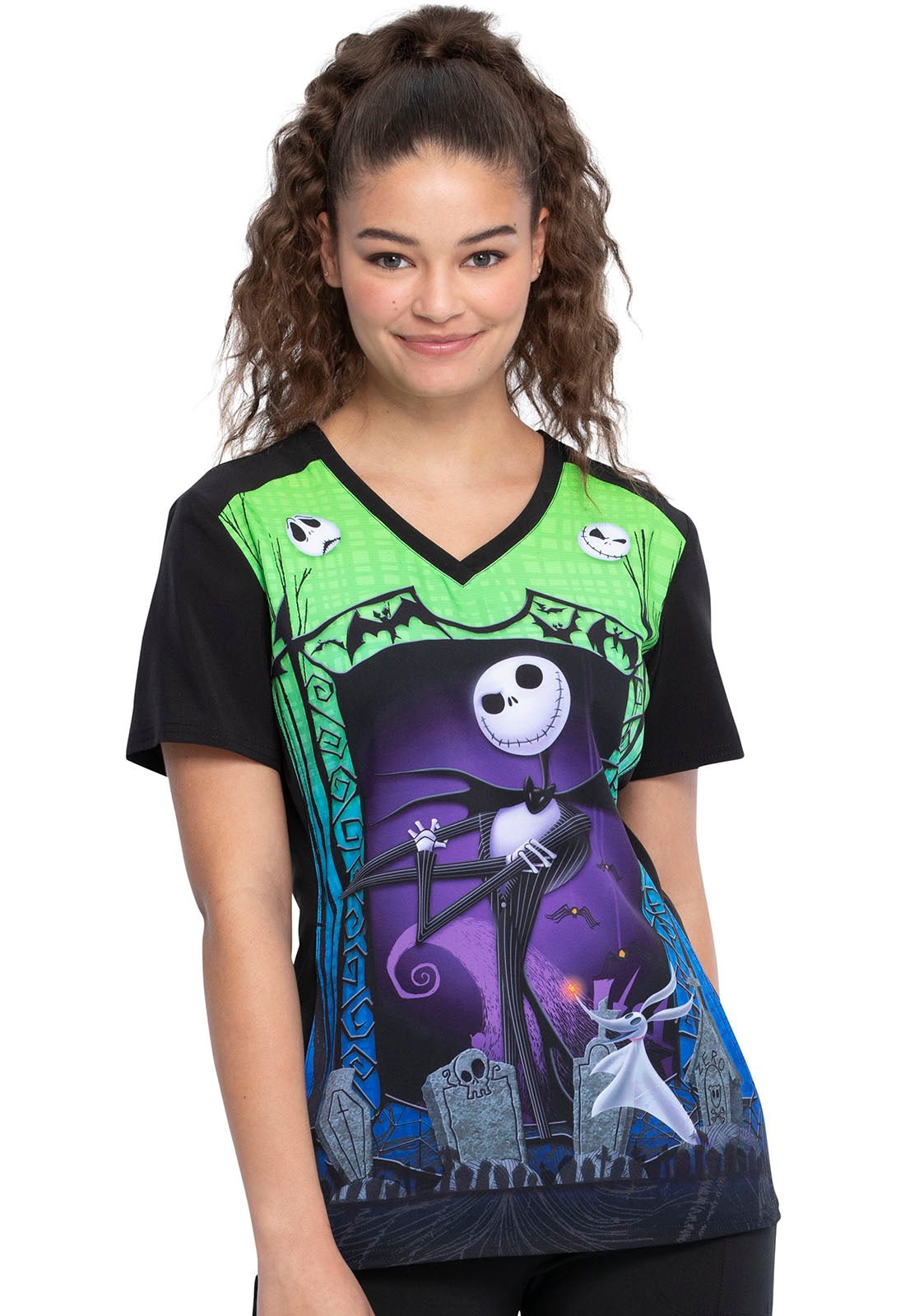 Nightmare Before Christmas Tooniforms Licensed Disney V Neck Scrub Top TF637 NCAZ