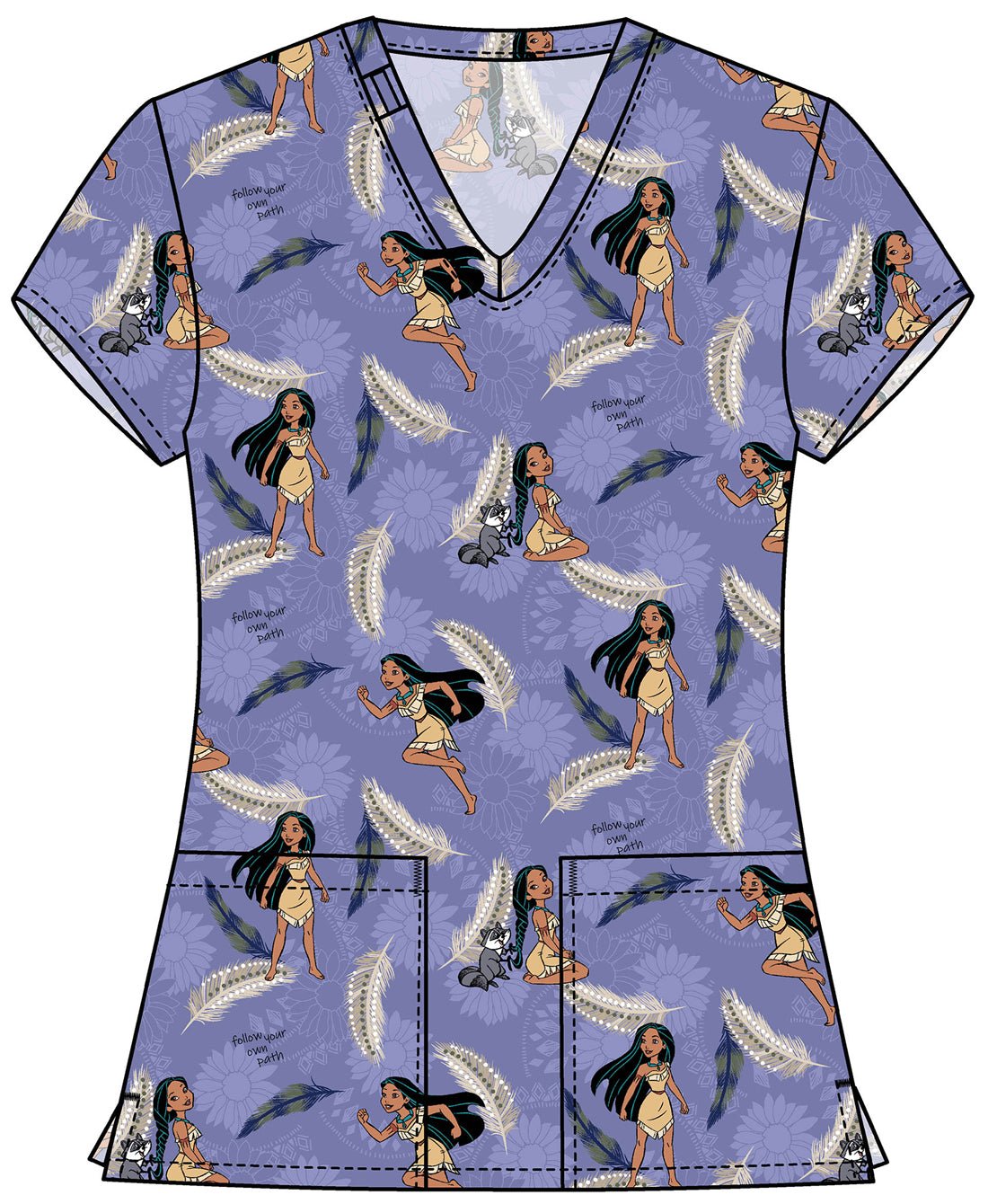 Pocahontas Tooniforms Licensed Disney V Neck Scrub Top TF796 PRPW