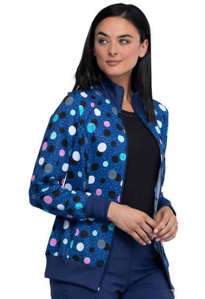 Cherokee Infinity Zip Front Jacket in Poppin' Polka Dots Navy