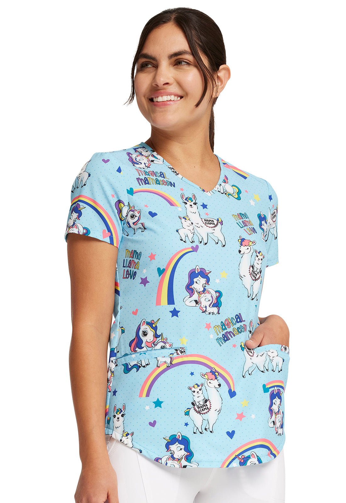 Rainbow Mamas Cherokee Animal Print V Neck Scrub Top CK637 RBMA