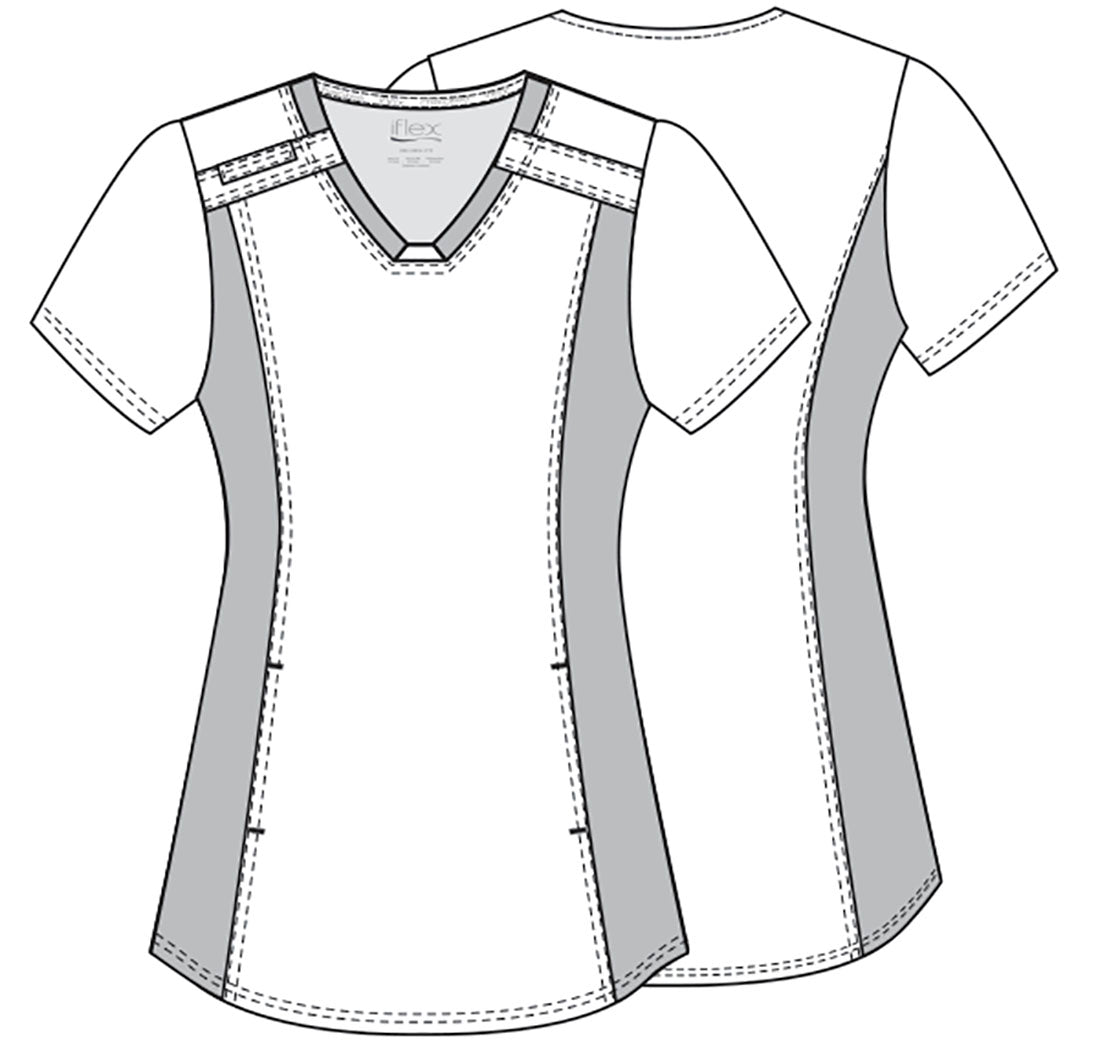 Cherokee iFlex V Neck Knit Panel Top in Soft Safari