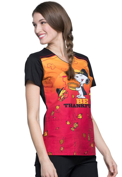 Snoopy Tooniforms Licensed Peanuts Thanksgiving V Neck Scrub Top TF686 PNGV