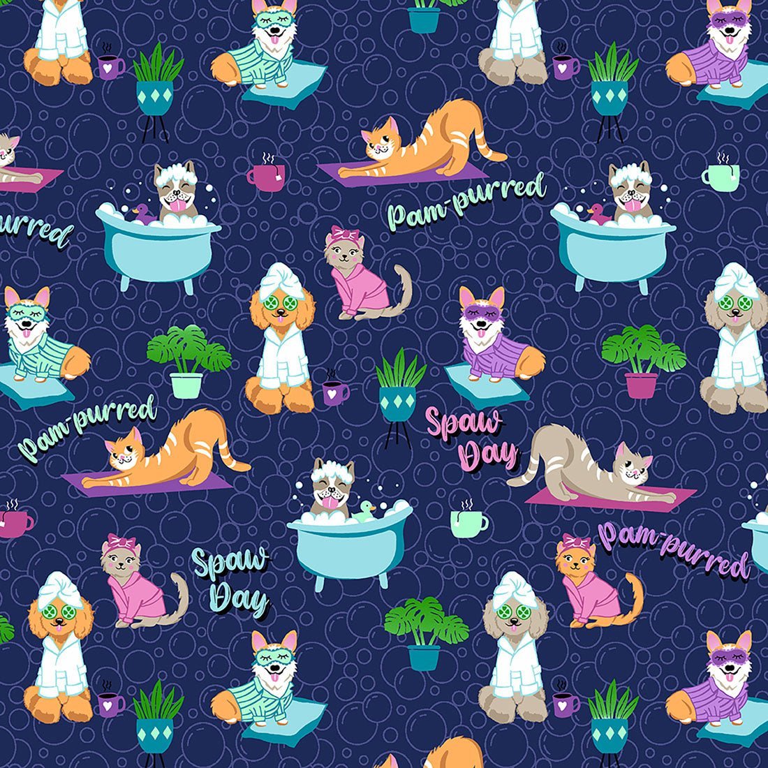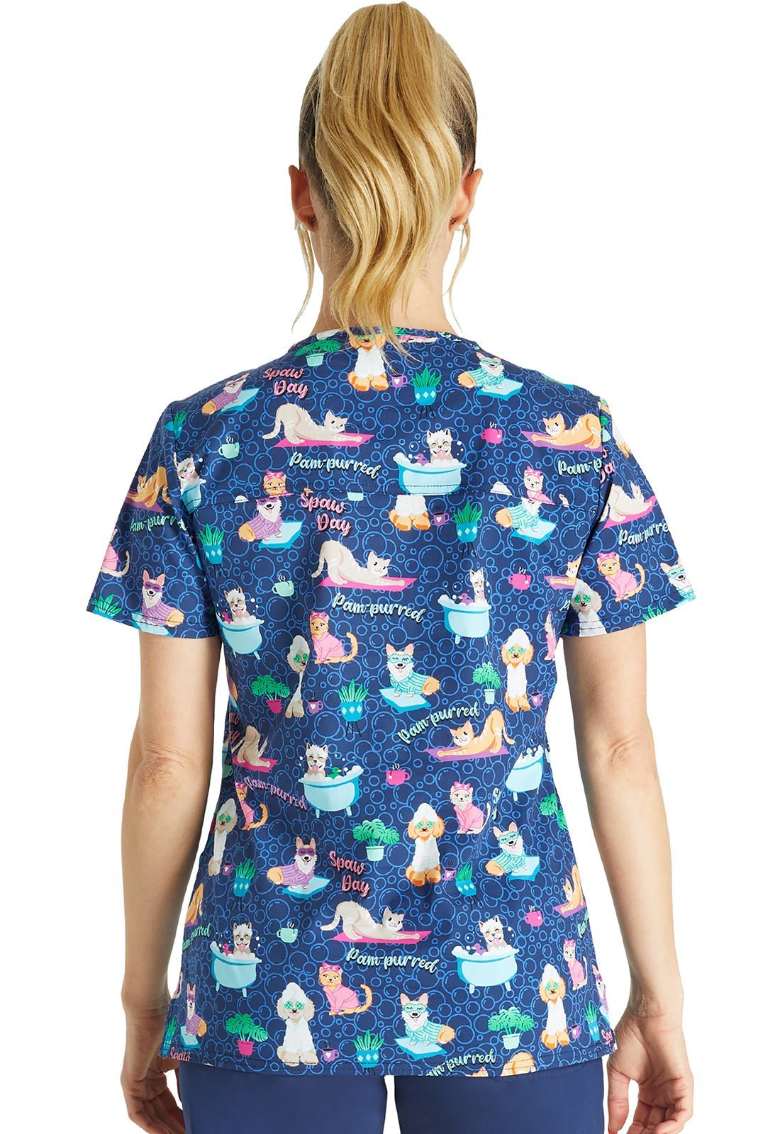 Spaw Day Cherokee Dog Cat Print V Neck Scrub Top CK651 SPWD