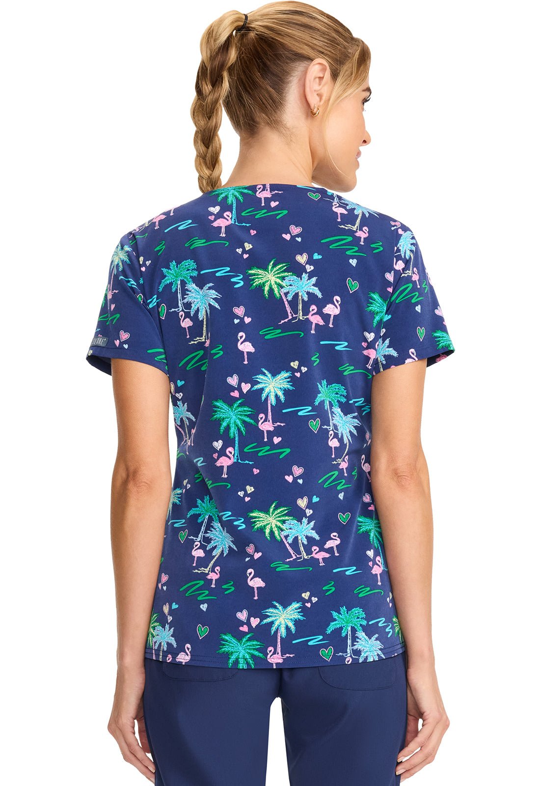 Tropic Love Med Couture Flamingo Print V Neck Scrub Top MC632 TCLV