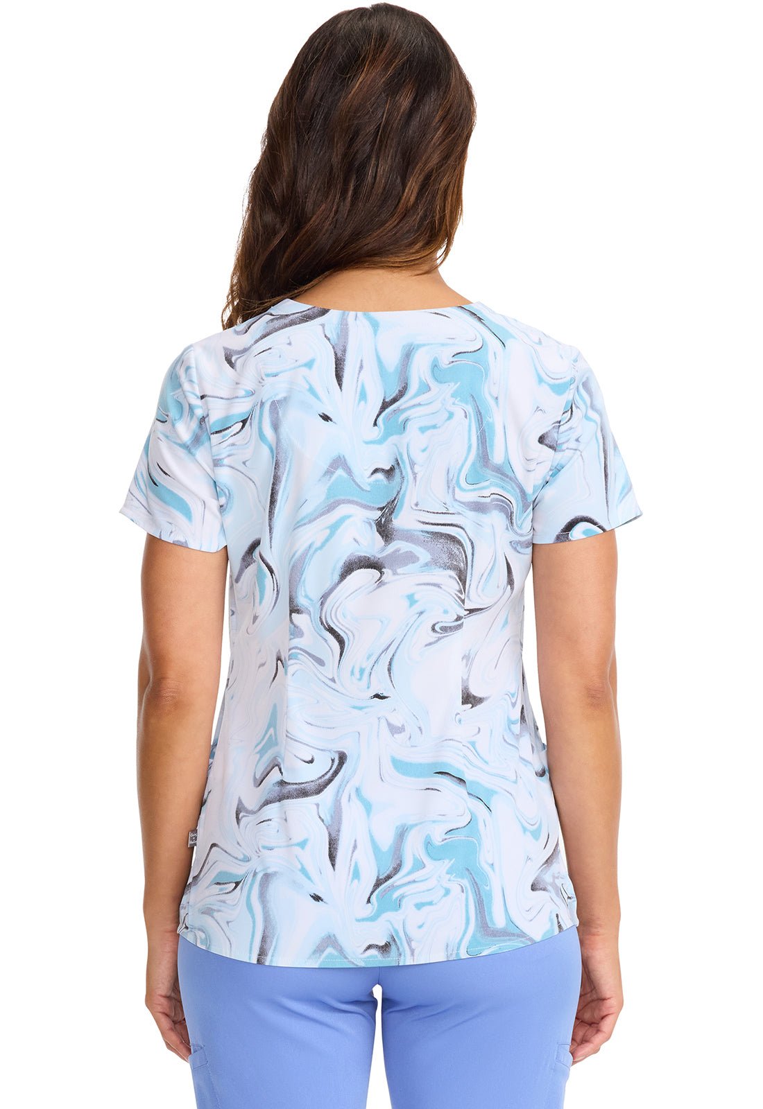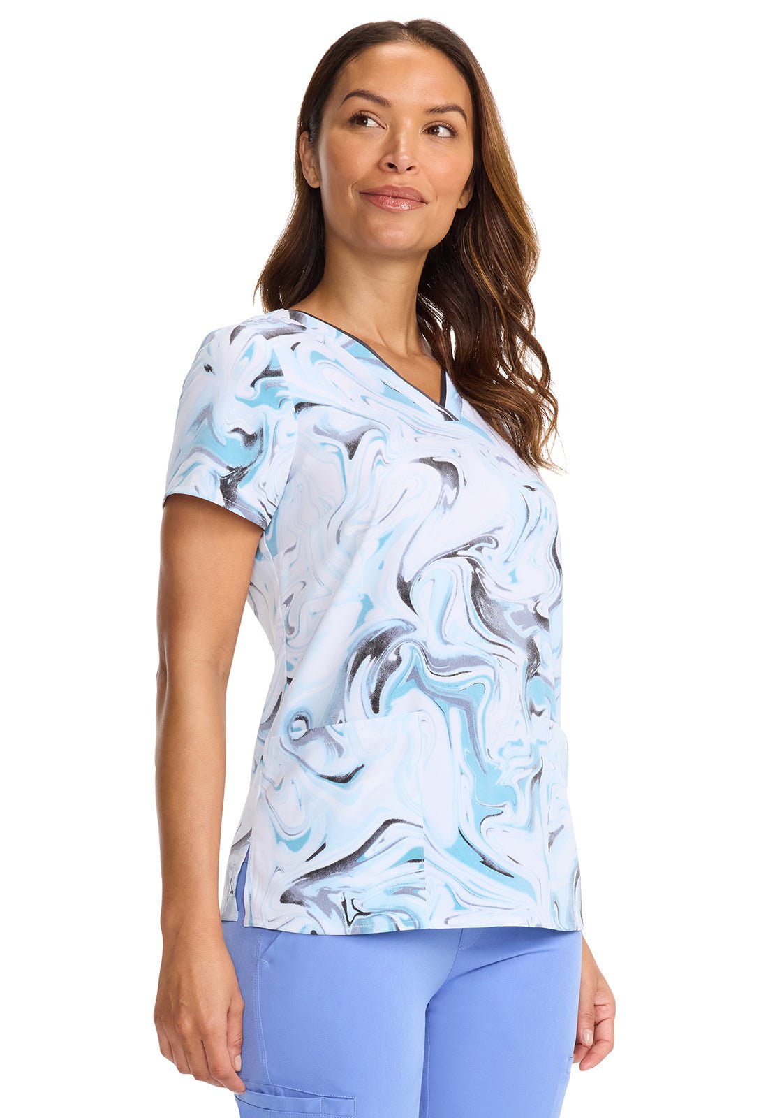 Washed Marble Healing Hands Print Scrub V Neck Top 2266 WSMB